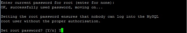 接著會詢問是否要建立 root 使用者密碼,輸入 Y ,按 Enter 鍵繼續